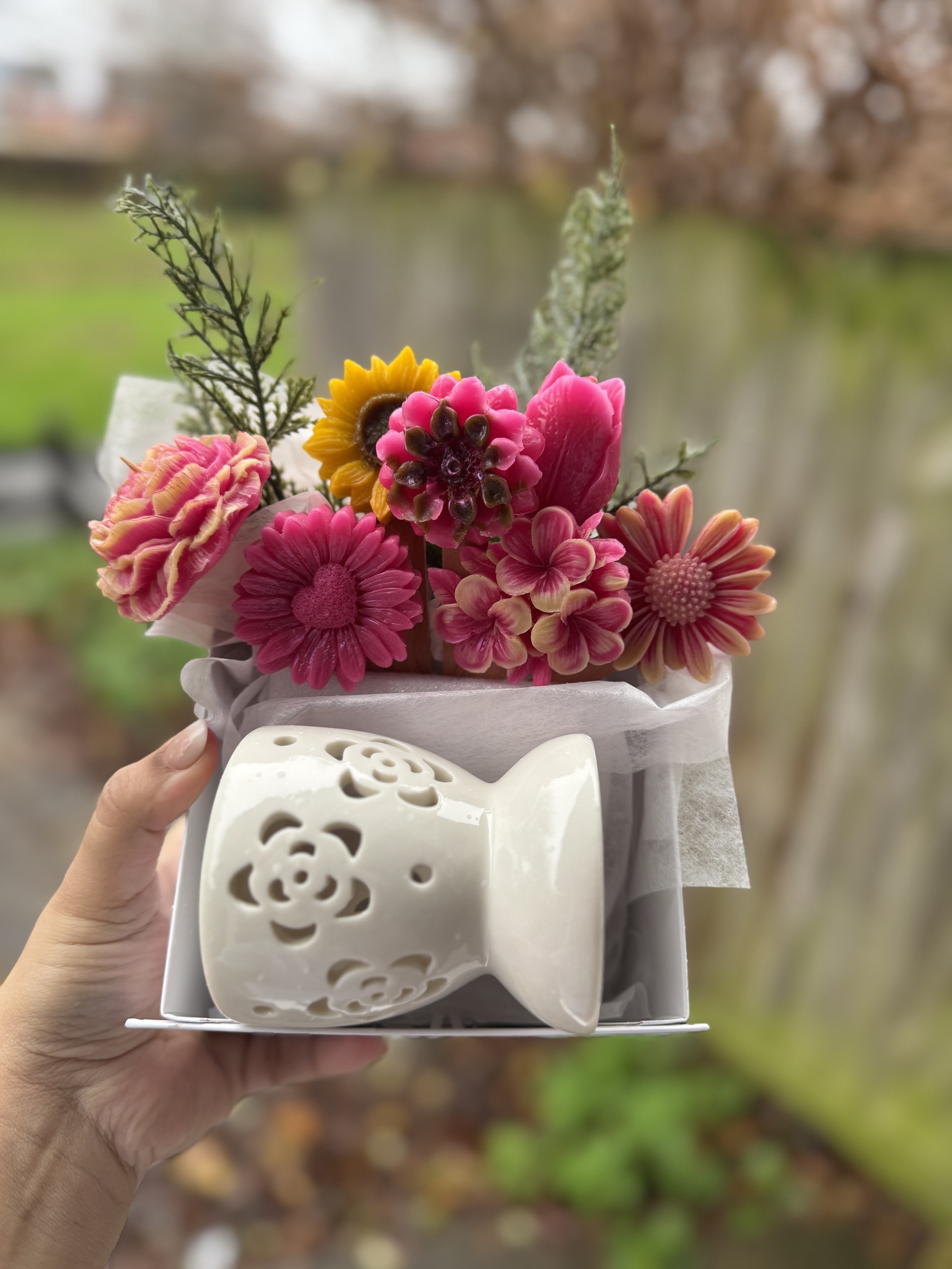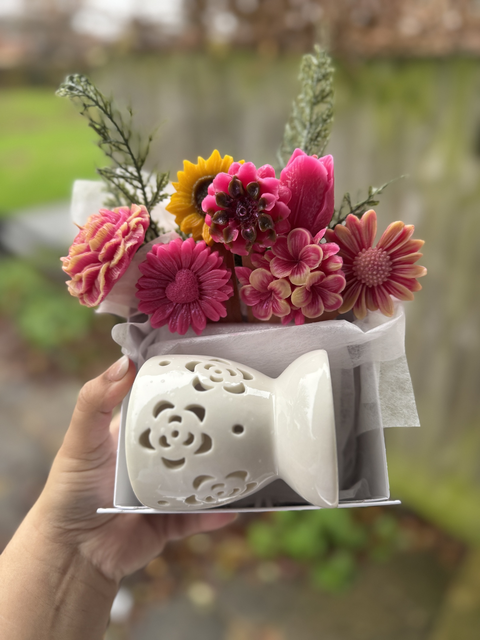 Floral Wax Melt Gift Set with Ceramic Burner Luxury Home Fragrance